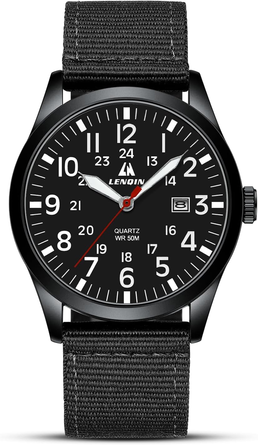 El reloj para hombre LN LENQIN es perfecto para hombres que buscan un estilo militar y deportivo. Con una correa de nailon resistente y una caja de cuarzo, este reloj es ideal para uso diario y actividades al aire libre. Resistente al agua y con función de fecha, es un reloj táctico militar que combina estilo y funcionalidad. ¡Consíguelo ya en Amazon!