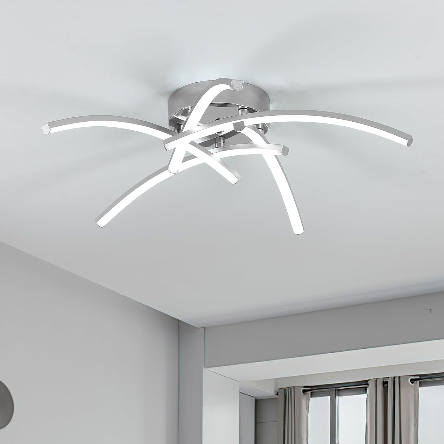 La lámpara de techo LED Dorlink es perfecta para iluminar tu dormitorio, salón, cocina o comedor con sus 5 luces y una potencia de 35W y 3150LM. Con un diseño moderno de ondas y un acabado en plata, esta lámpara de techo de 52cm de diámetro emite una luz blanca fría de 6500K, creando un ambiente luminoso y acogedor en cualquier espacio. ¡Renueva la iluminación de tu hogar con esta elegante y eficiente lámpara de techo!