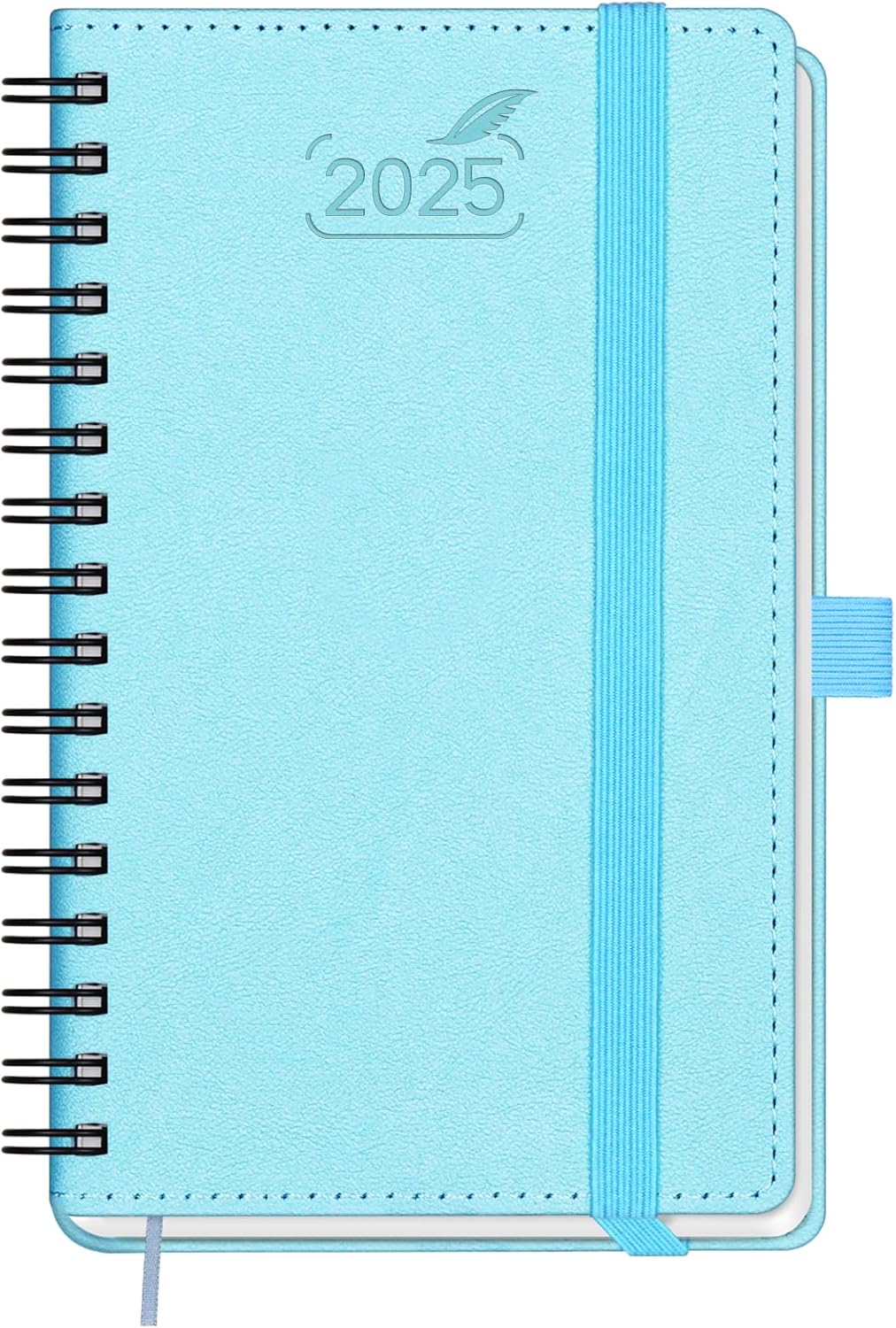 BEZEND Agenda 2025 Pequeña Semana Vista Espiral, A6 Mensuales Planificador Anual 2025 con Papel de 80 g/m² – Tapa Blanda de Cuero PU, Tamaño Bolsillo 9 x 15,5 cm, Azul Cielo