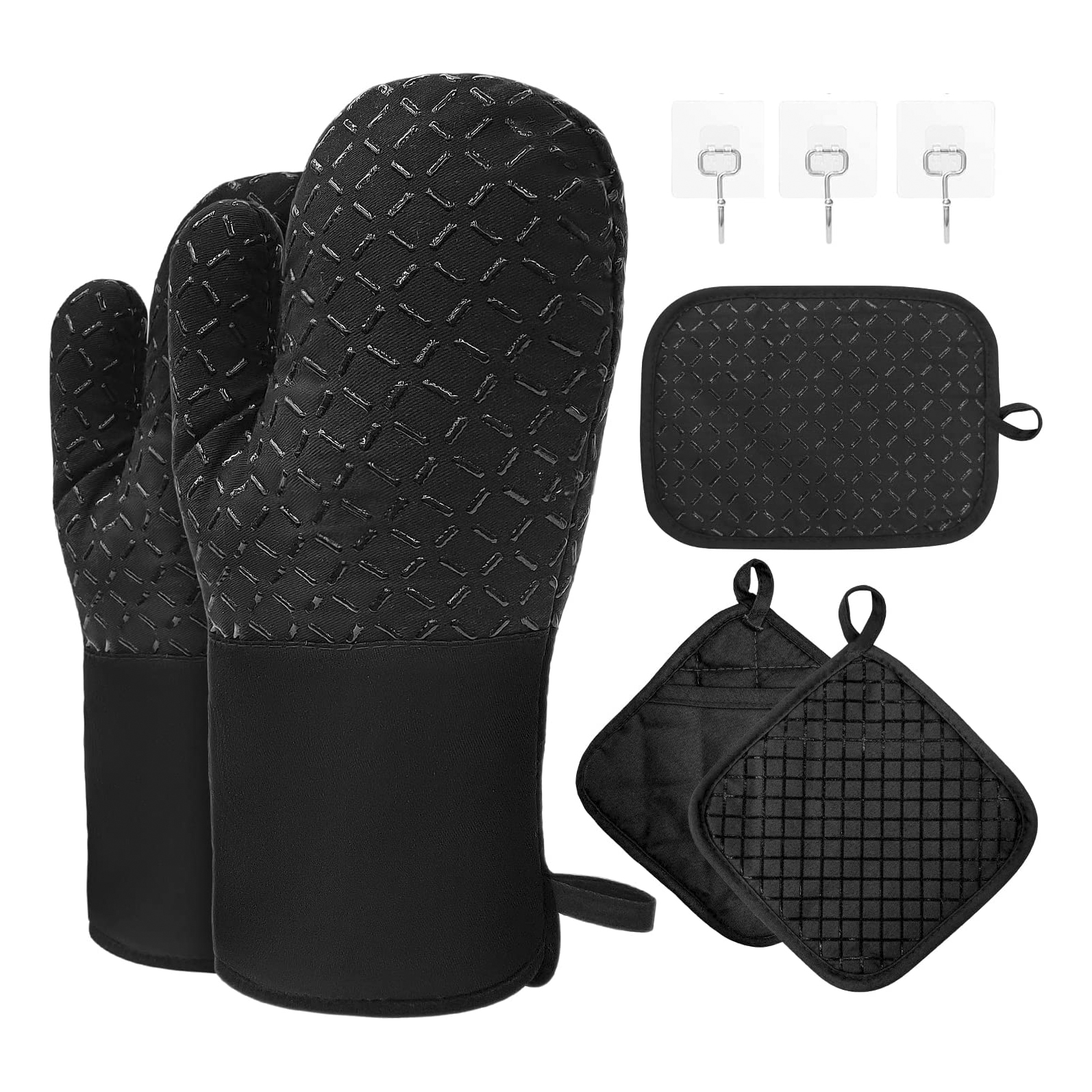 Juego de Manoplas y AGARRADERAS PARA Horno, Guantes para Horno de Algodón Resistentes al Calor de 300 ℃, Guantes Largos with Silicona Antideslizante, Guantes de Cocina para Cocina, Hornear, Cacerola