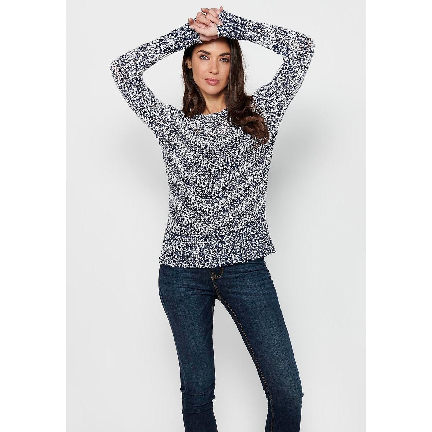 Koroshi long sleeve crew neck sweater. Navy striped knit for women | Current fashion