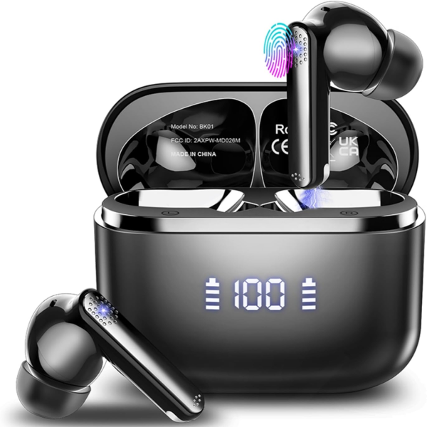 Aptkdoe Auriculares Inalámbricos Bluetooth, Auriculares Bluetooth 5.3 HiFi Estéreo con HD Mic, 48 H Cascos Inalámbricos Bluetooth con función de reducción de Ruido, IPX7 Impermeable, Pantalla LED 2024
