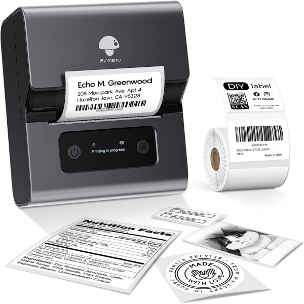 Phomemo M221 Impresora De Etiquetas Autoadhesivas Bluetooth De 3″, para teléfonos iOS y Android, impresora de códigos de barras para ropa, joyería, venta al por menor, hogar, Gris