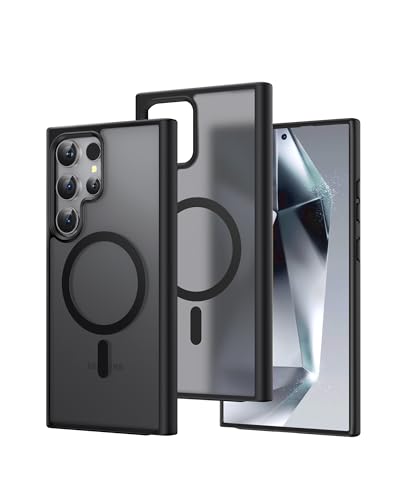 Silkland Funda Magnética para Samsung Galaxy S24 Ultra, a Prueba De Golpes, Carcasa Protectora Delgada Translúcida Mate para S24 Ultra, Capa Magnética De Grado Militar, Negro [No Amarillea]