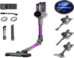 KOHE Aspirador sin Cable 500W/33Kpa, 3 Modos 7 * 2200 mAh hasta 55 min de autonomía con Sistema de Filtro Mejorado, Apto para Suelos de Madera alfombras Mascotas Coche, K10 Morado