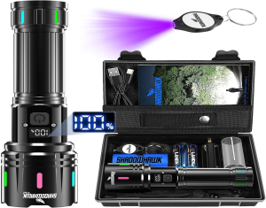 Shadowhawk Linternas LED Alta Potencia, 30000 Lúmenes Linterna LED Recargable XHM90.2 Linterna Potente, Táctica Militar Linterna Largo Alcance, Impermeable Flashlight para Emergencias Camping Regalo