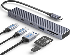 USB C Hub, ORICO Adaptador Hub de 4 Puertos para Portátiles, Teléfonos Móviles, Tabletas, con Cable de 0,15m, Hub USB 3.0 Compatible con Mac OS 10.x y Superior, Linux, Android
