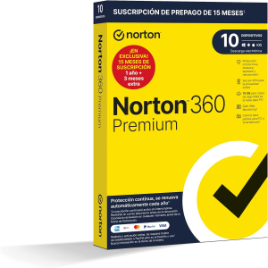 Norton 360 Premium 2024 – Antivirus software para 10 Dispositivos 15 meses de suscripción – Secure VPN y Gestor de contraseñas – PC, Mac tablet y smartphone
