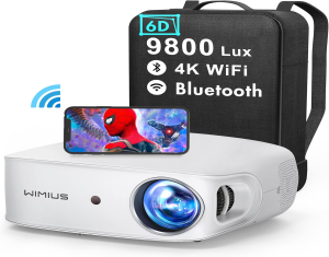 Proyector 5G WiFi Bluetooth Full HD 1080P, 10000 Lúmenes WiMiUS Proyector 4K Soporte Corrección Trapezoidal 6D Auto con Función Zoom Proyector WiFi Portátil Cine En Casa para Teléfonos,Fire Stick,PS5