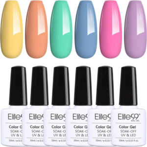 Elite99 6pcs Kit de Esmaltes Semipermanentes de Uñas en Gel UV LED, 10ml, Macarrón Colors Rosa Púrpura Azul Verde